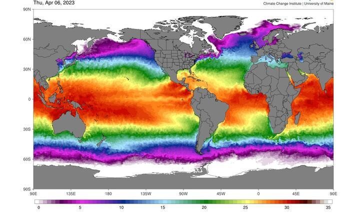 NOAA ve Maine Üniversitesi tarafından ortaklaşa hazırlanan okyanus sıcaklıkları ölçümlerine göre Nisan ayında okyanus yüzeyi ortalama sıcaklıkları, 2016’daki 21 derecelik rekoru geçerek 21.1 derece oldu.