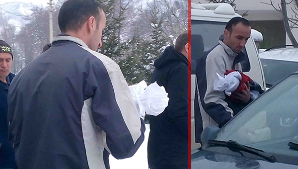 Sakarya'nın Akyazı İlçesi'nde 2 ay önce doğan ve ciğeri su topladığı için yaşamını yitiren Damla Şişmanoğlu'nun cenazesi, babası Coşkun Şişmanoğlu'nun kucağında mezarlığa götürülüp toprağa verildi.