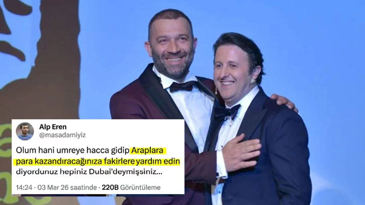 Sosyal medya platfonmu X’te Alp Esen adlı bir kullanıcı, konu İslam ve Araplar olunca tüyleri diken diken olan solakları rezil etti. ‘Türkiye yaşanmaz hale geldi’ diyerek ülkeden ayrıldığını açıklayan bir çok Türk ünlü ile Şevket Çoruh ve İlker Ayrık'ın da İran’ın saldırıları sonrası Dubai’de mahsur kaldığının ortaya çıkması üzerine Çoruh ve Ayrık’ın fotoğrafını etiketleyen Alp Esen’in viral olan paylaşımı şöyle: