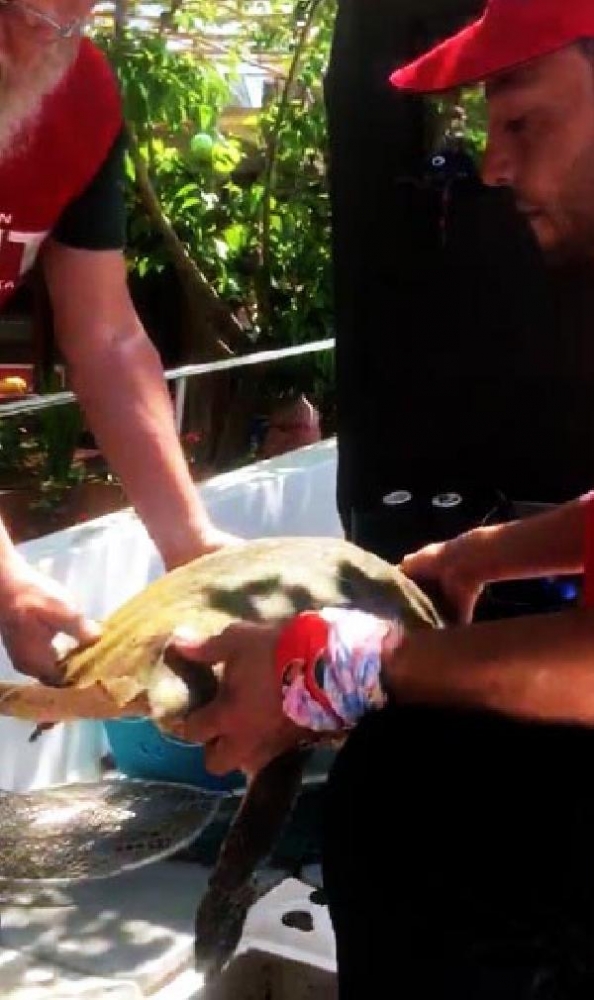 "Birkaç aydır yaralı ve ölmüş caretta carettalarla çok sık karşılaşır hale geldik, Yaralanma ve ölümlerin büyük bölümü insan kaynaklı. Bu deniz kaplumbağası da olta yutmuş.