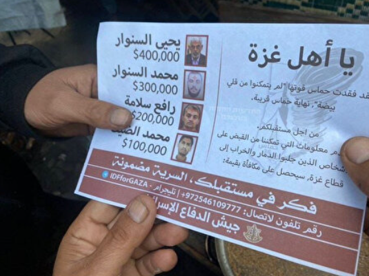 Broşürlerde, güney tugayını komuta eden Muhammed Sinwar hakkında bilgi verecek kişilere 300 bin dolara kadar ödeme yapılacağı, Hamas'ın Han Yunus taburunun komutanı Rafa'a Salameh hakkında bilgi için ise 200 bin dolar verileceği belirtiliyor.