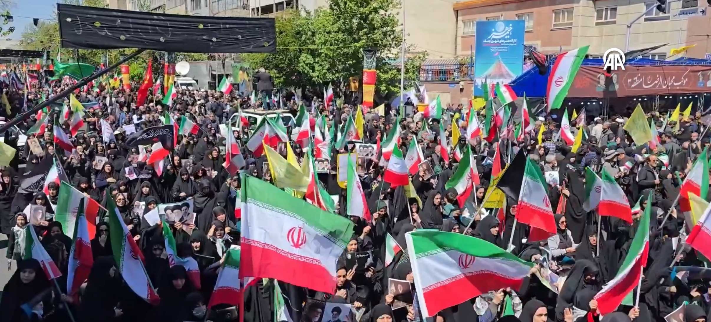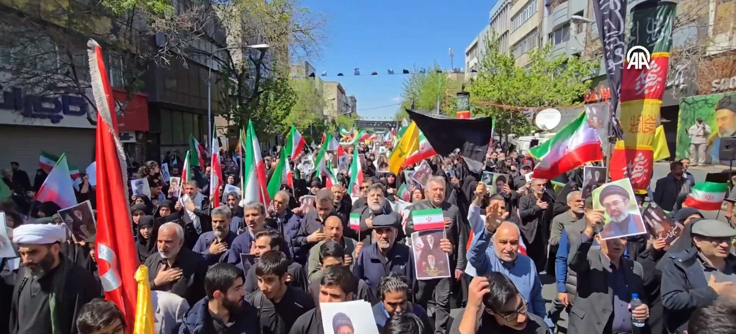 Ülkenin yeni lideri Mücteba Hamaney lehine sloganların atıldığı yürüyüşte, birçok İranlının Hizbullah bayrağı taşıması dikkati çekti.