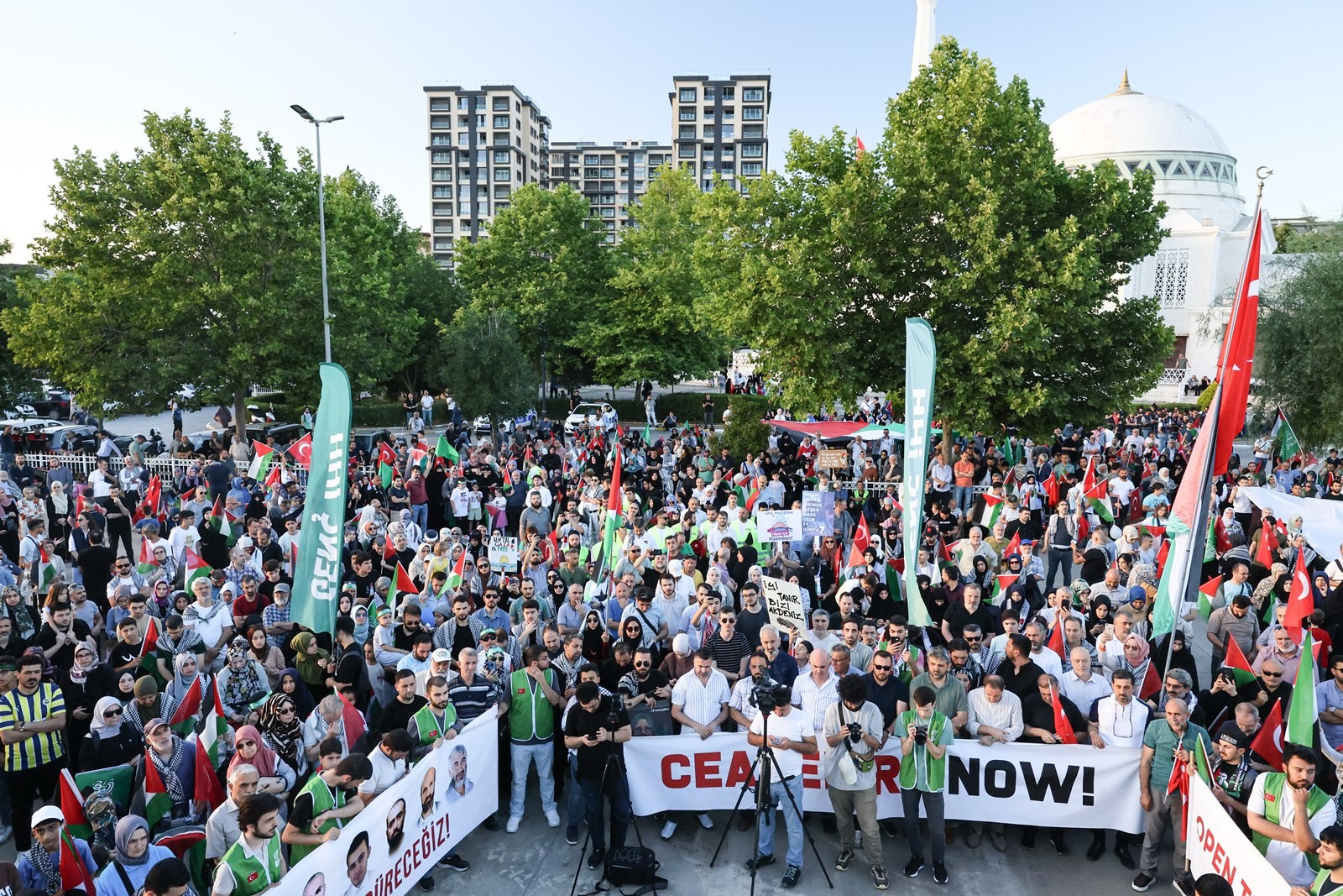 Pendik Marmaray İstasyonu’nda bir araya gelen on binlerce kişi, ellerinde Türk ve Filistin bayrakları ile yürüyüşe geçti. “Katil İsrail Filistin’den defol”, “Katil İsrail, işbirlikçi Amerika”, “Nehirden denize özgür Filistin”, “Filistin halkı yalnız değildir” sloganları atıldı, tekbirler getirildi.