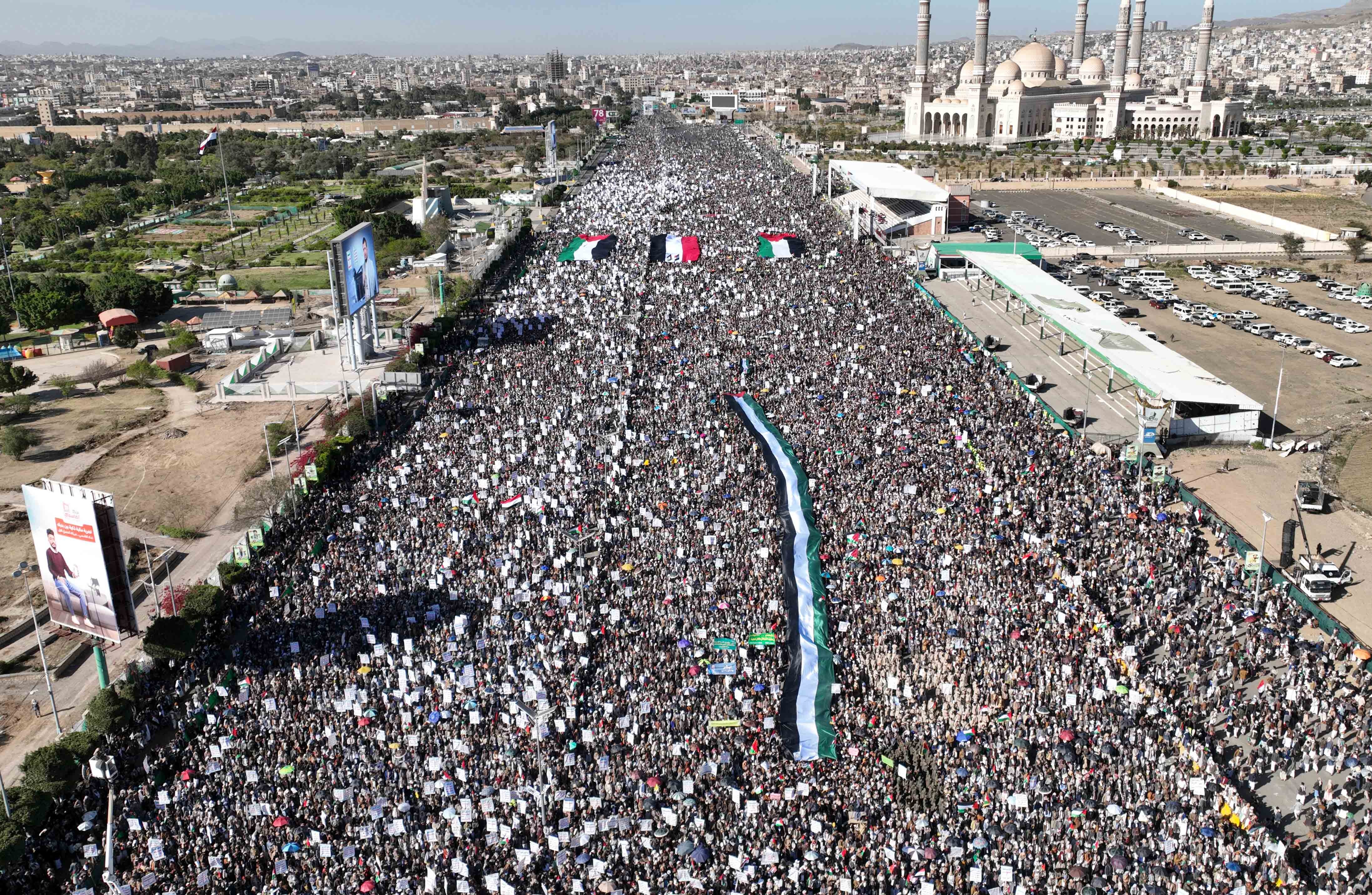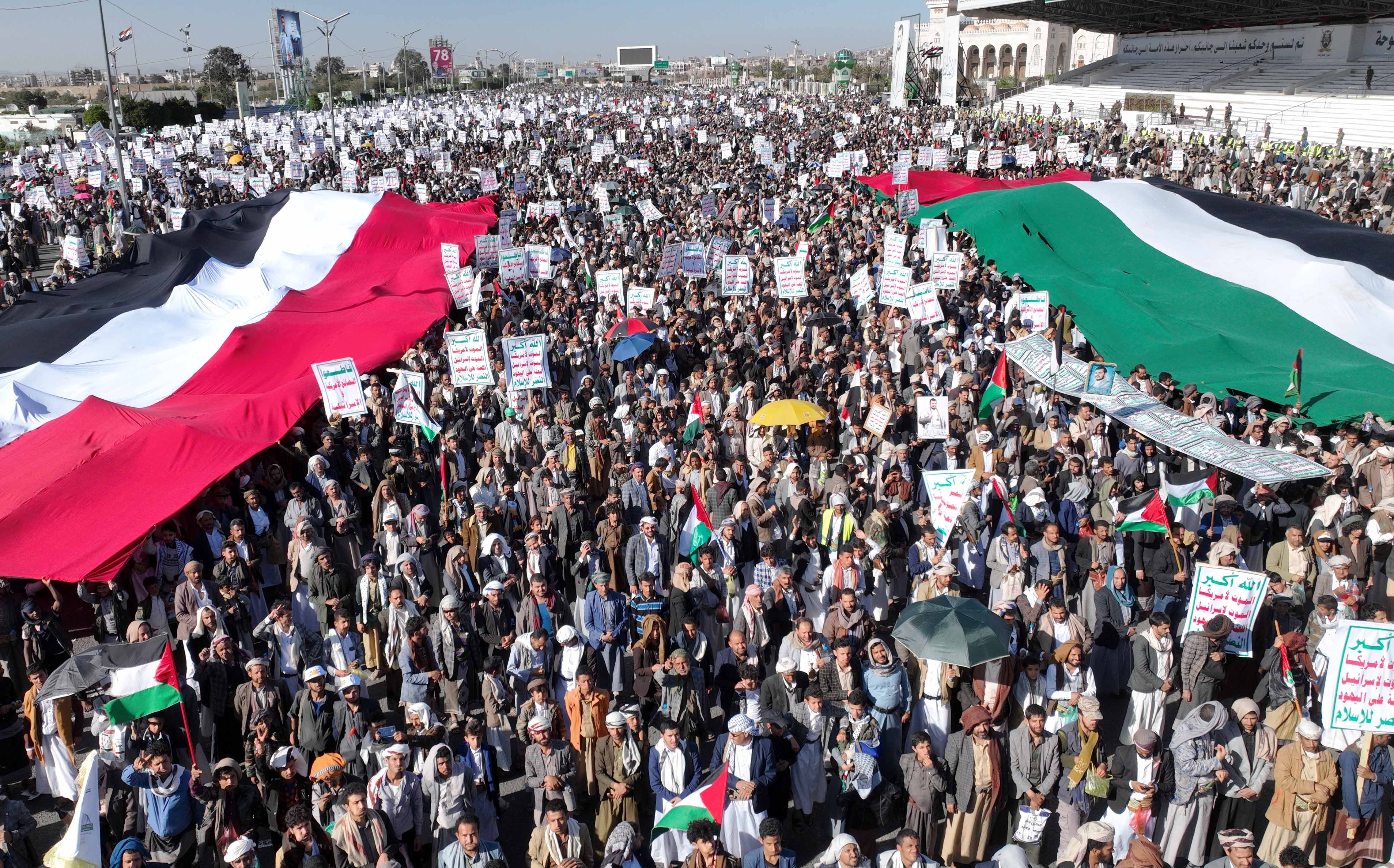 İsrail'in Gazze'ye saldırılarını başlattığı 7 Ekim'den bu yana, neredeyse her hafta Yemen'in farklı şehirlerinde Filistin'e destek gösterileri düzenleniyor.