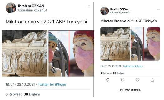 Özkan heykellerin ittifak ortakları CHP yönetimi tarafından yaptırıldığını fark edince paylaşımını silmek zorunda kaldı.