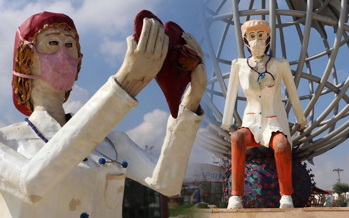 Denizli Merkezefendi Belediyesi'nin koronavirüs salgını sürecinde yoğun bir çalışma dönemi geçiren sağlık çalışanlarına ithafen inşa ettiği tematik sağlık parkında yer alan heykeller, estetik ve mimari yapısı nedeniyle tepkilere neden oldu.