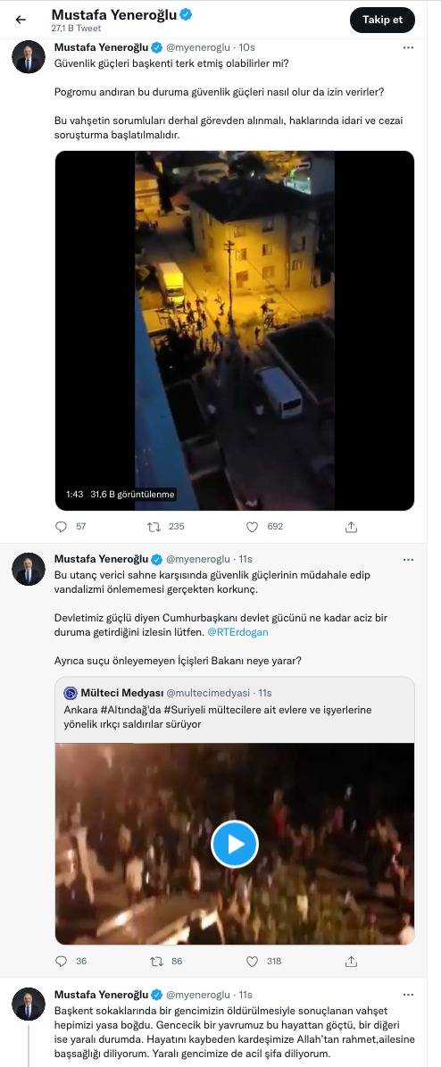"Güvenlik güçleri başkenti terk etmiş olabilirler mi? Pgromu andıran bu duruma güvenlik güçleri nasıl olur da izin verirler? Bu vahşetin sorumluları derhal görevden alınmalı, haklarında idari ve cezai soruşturma başlatılmalıdır."