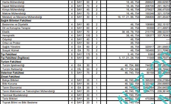 Ondokuz Mayıs Üniversitesi 2020 taban puanları başarı sıralamaları 4 yıllık