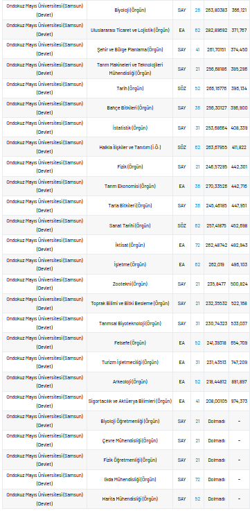 Ondokuz Mayıs Üniversitesi 2021 taban puanları ve yüzdelik dilimleri nelerdir?