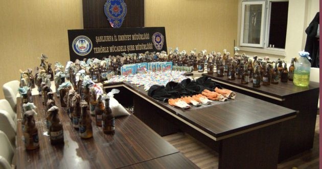 Şanlıurfa'da güvenlik güçlerince 161 molotofkokteyli ve bin 35 ses bombası ele geçirildi, olayla ilgili 22 kişi gözaltına alındı.