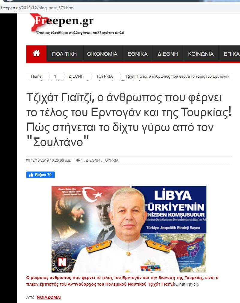 Türkiye’nin Doğu Akdeniz ve Ege’deki faaliyetlerini dört gözle takip eden Yunanistan basını, Libya ile yapılan anlaşmanın mimarı Dr. Cihat Yaycı Paşa’yı hedef göstermeyi sürdürüyor. Yunanistan’da yayın yapan ve genellikle aşırı sol fikirlerin yer aldığı “freepen” isimli haber sitesinde "Cihat Yaycı; Erdoğan'ın ve Türkiye'nin sonunu getirecek insan" başlıklı bir yazı yayınlandı.