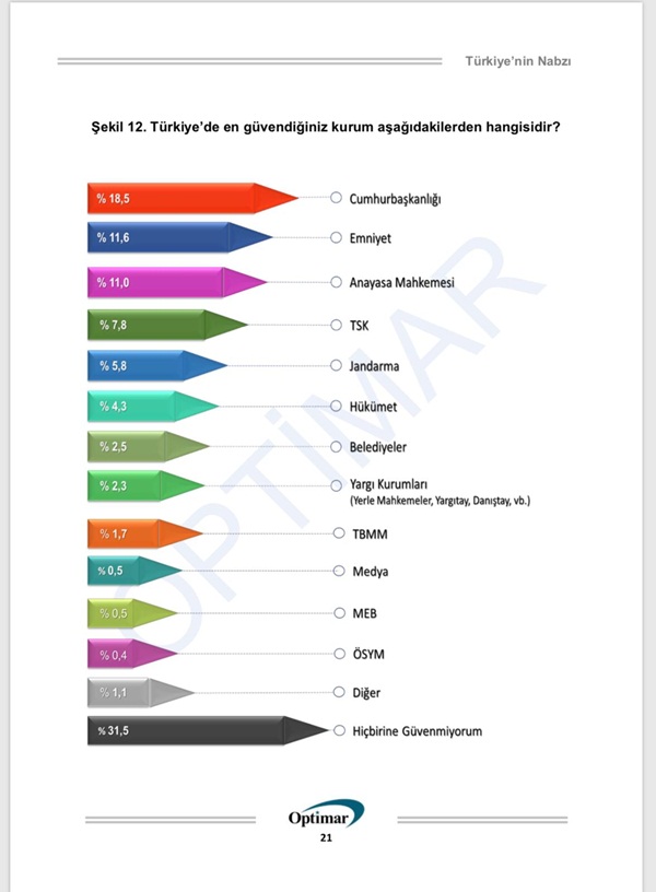Sezai Erhan yeniakit.com.tr Ünlü anket şirketi Optimar Türkiye Nabzı Araştırması adını verdiği bir anket yayımladı. 5-10 Eylül 2019 tarihleri arasında 26 il genelinde gerçekleştirilen kamuoyu araştırmasında 18 yaş üzeri 1708 kişi ile görüşüldü.