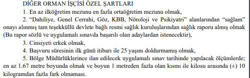 Tarım ve Orman Bakanlığı OGM işçi alım şartları neler?