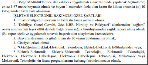 İşçi alım süreci ile ilgili tüm bilgilendirmeler, adaylardan istenilecek evraklar ile Sözlü ve Uygulamalı Sınavın yeri ve tarihi Bölge Müdürlükleri internet sitesi üzerinden ilan edilecektir. Talep şartlarını taşımadığı sonradan anlaşılan adayların başvuruları ilan, kura, sınav ve atama süreçlerinin her aşamasında idarece sonlandırılabilecektir.
