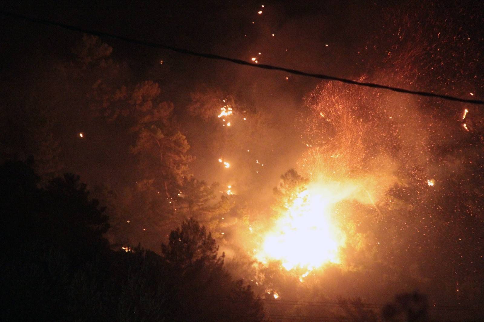 Marmaris Cennet Adası zirvesinde akşam saatlerinde başlayan yıldırım düşmesi kaynaklı orman yangını devam ediyor.