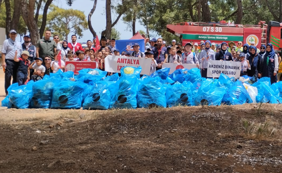 Antalya’nın Kepez ilçesinde 250 kişilik grup, ormanlık alanda bulunan çeşitli atıkları titizlikle toplayarak bölgeyi temiz bir hale getirdi.