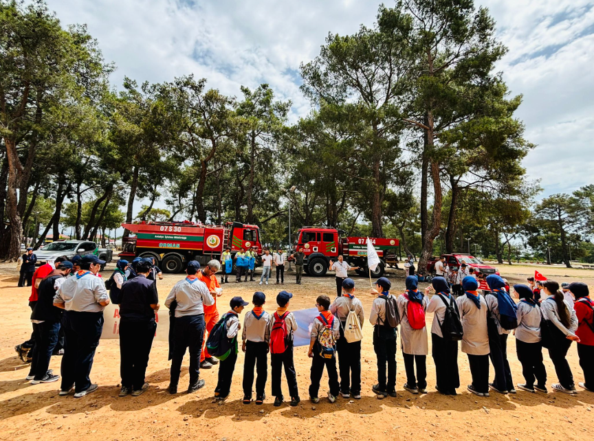 Etkinlik kapsamında, orman yangınlarıyla mücadele konusunda da katılımcılara bilgilendirme yapıldı. Antalya Orman İşletme Müdürlüğü yetkilileri, orman yangınlarına karşı ilk müdahalede kullanılan araç ve ekipmanlar hakkında bilgi verdi. Arazözlerin ve su tankerlerinin yangın söndürmedeki kritik rolü anlatılırken, olası bir yangın durumunda nasıl hareket edilmesi gerektiği, 112 Acil Çağrı Merkezi'nin aranması, olay yeri bildirimi ve doğru araç yönlendirmesi konularında da bilgilendirme yapıldı.