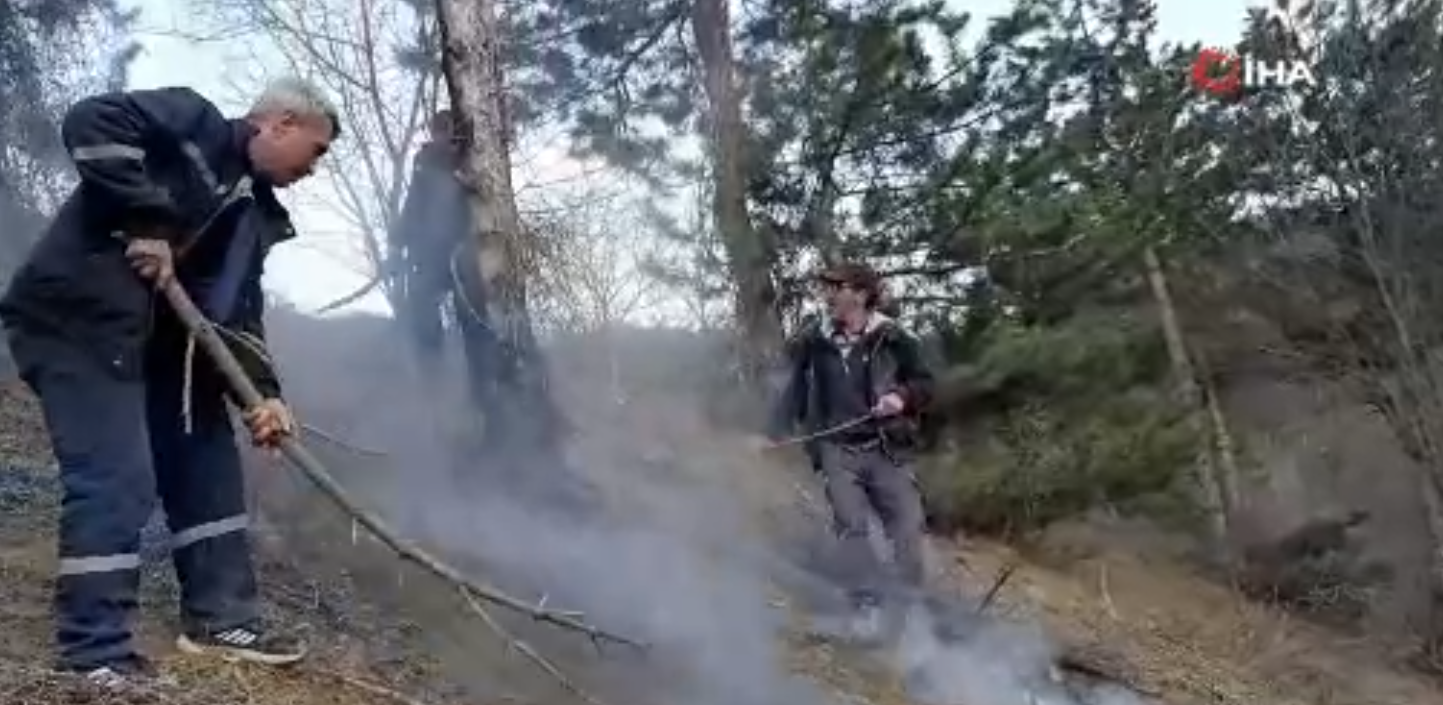 Bolu’da ormanlık alanda çıkan örtü yangını, koyunlarını arazide otlatan çobanın müdahalesiyle söndürüldü. İtfaiye ekipleri arazide soğutma çalışması yaptı.