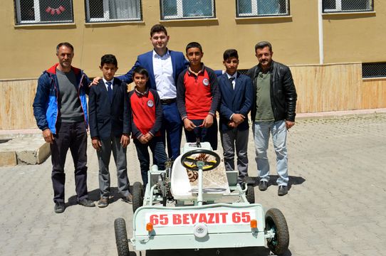 Van'ın Erciş ilçesinde bir ortaokul öğrencisi, atık malzemeler ve motosiklet motoru kullanarak "go kart" aracı yaptı.