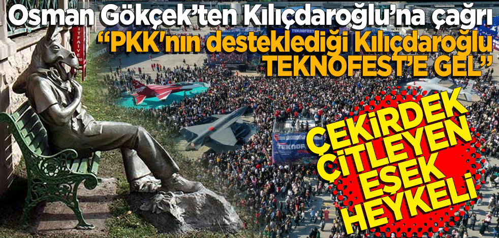 Gökçek, "PKK terör örgütünün desteklediği Kılıçdaroğlu, Ankara'da TEKNOFEST var. Çekirdek çitleyen eşek heykeli yapmaya benzemez. Gel de buraları bir gez. Bak millet sana neler diyecek." dedi.