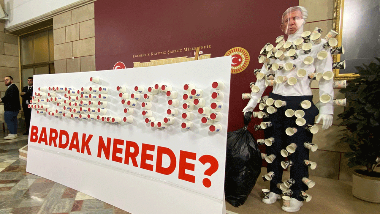 AK Parti Ankara Milletvekili Osman Gökçek, Meclis’e Ankara Büyükşehir Belediye Başkanı Mansur Yavaş'ın karton maketi ile gelerek ABB'nin 159 milyonluk vurgununu anlattı. ABB’nin karton bardak ve çöp poşeti ihalelerinde yolsuzluk yaptığını iddia eden Gökçek, "41 yıl Ankara'ya yetebilecek kadar bardak alınmış. Ankara'dan Londra'ya kadar yol olabilecek bu bardaklar nerede" diye sordu.