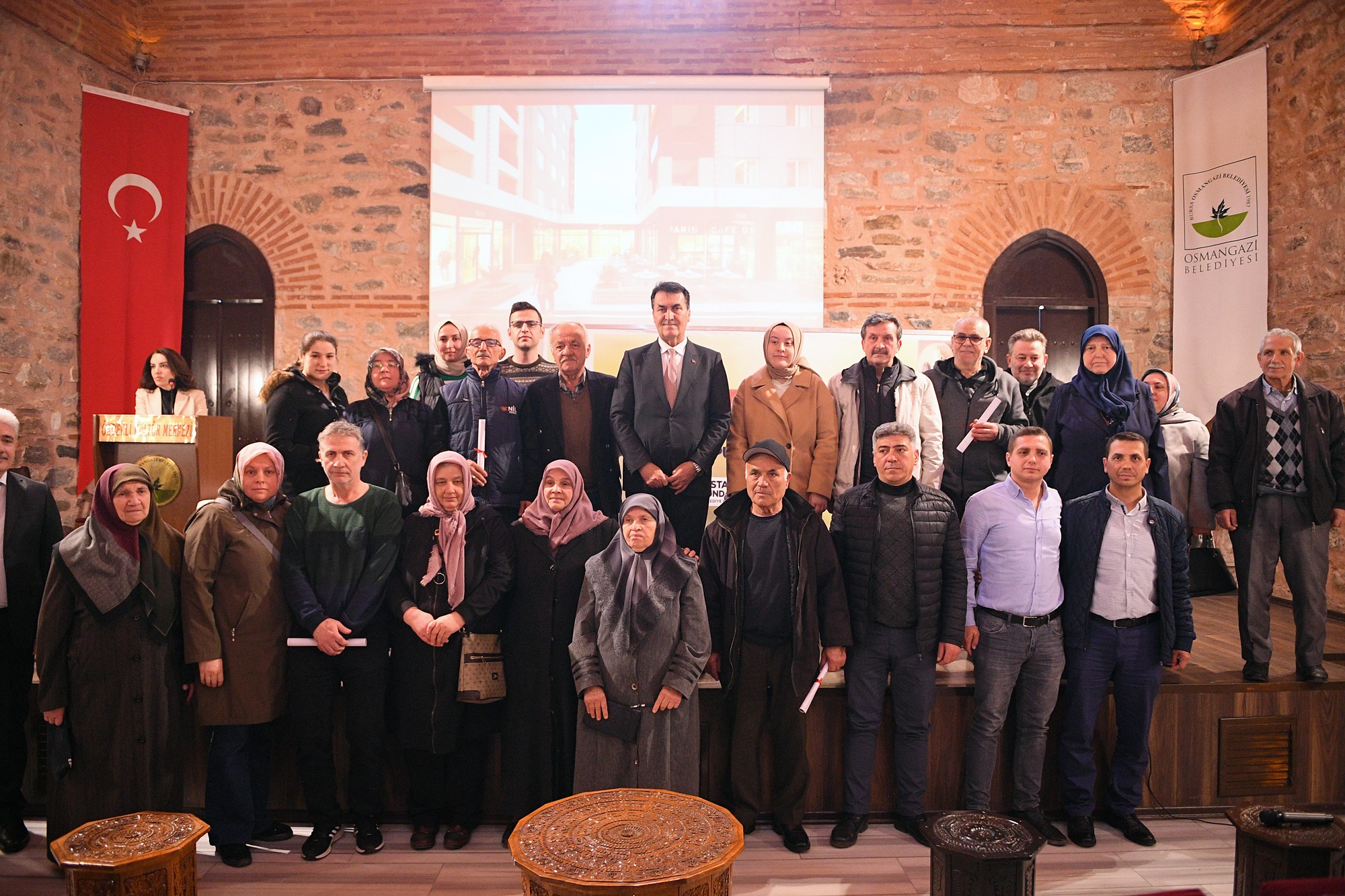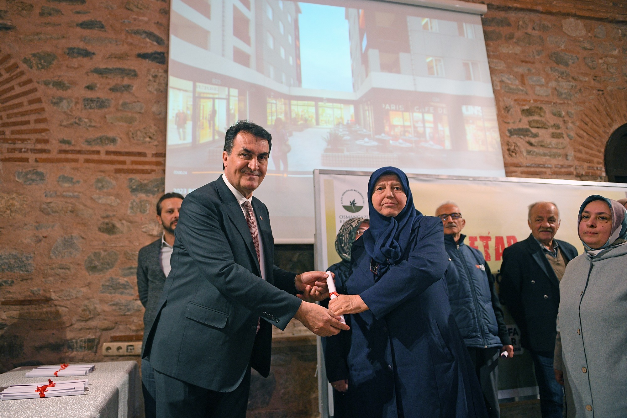 Ördekli Kültür Merkezi’nde 15. Noter Başkâtibi huzurunda çekilen kuraların ardından 18 hak sahibi tapularını Osmangazi Belediye Başkanı Mustafa Dündar’ın elinden aldı.