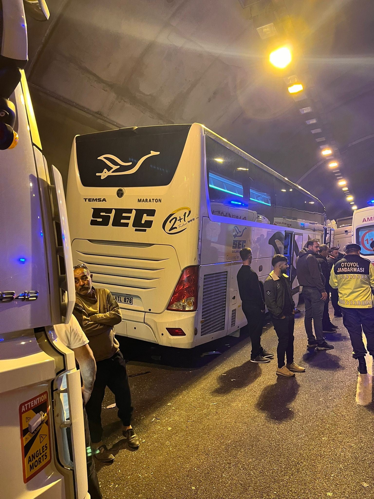 Osmaniye’nin Düziçi ilçesinde TAG Otoyolu üzerindeki Taşoluk Tüneli’nde yolcu otobüsü ile TIR’ın çarpışması sonucu 5 kişi yaralandı. Kaza sonrası otoyolda ulaşım bir süre kontrollü sağlandı.