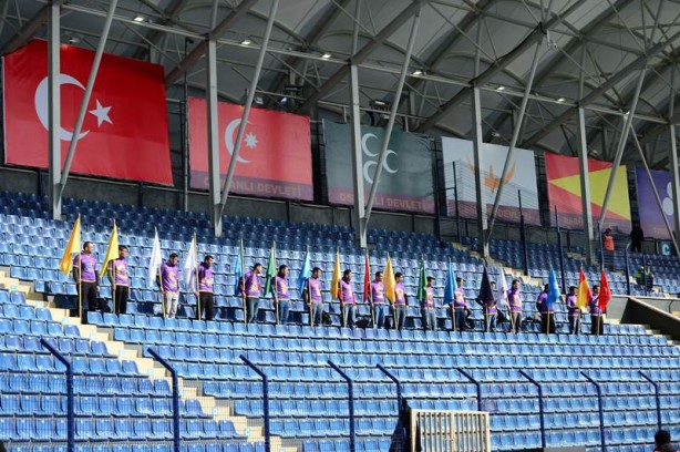 Ayrıca, Osmanlı İmparatorluğu'nun sancağı, dev pankart halinde skor tabelasının yanında yer alırken, kale arkası tribünde ise Oğuzlar Birliğinden "Kayı Boyu" sancağı dikkati çekti.