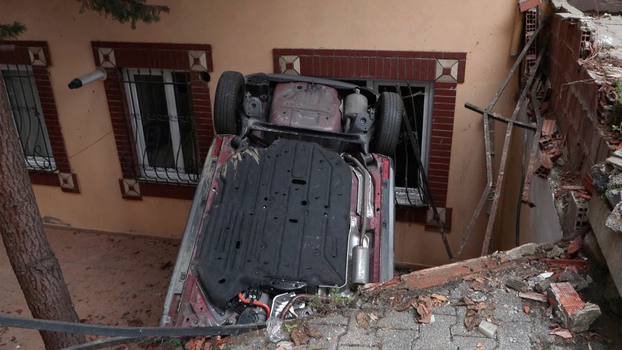 İstanbul Ataşehir’de park etmeye çalışan sürücü, fren yerine gaza basınca otomobil apartman bahçesine düştü.