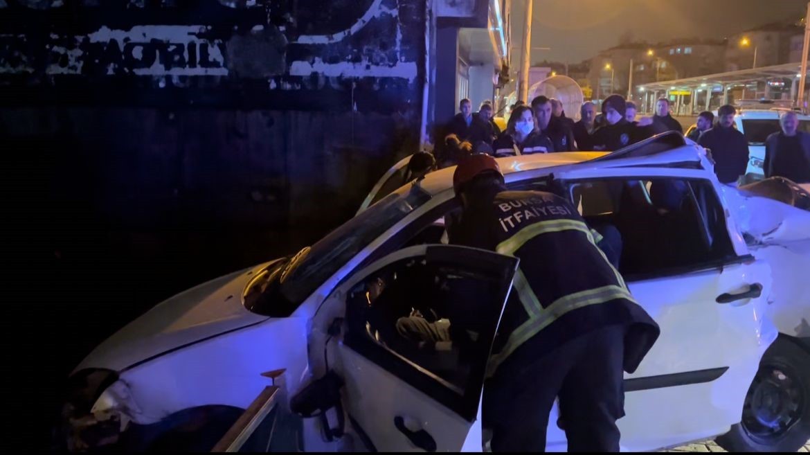 Bursa'da sürücüsünün kontrolünden çıkan otomobil kaldırım üzerinde bulunan direğe çarptıktan sonra demir korkuluklarda asılı kaldı. Yaşanan kazada 1'i ağır 3 kişi yaralanırken, 1 kişi de kaldırıldığı hastanede hayatını kaybetti.