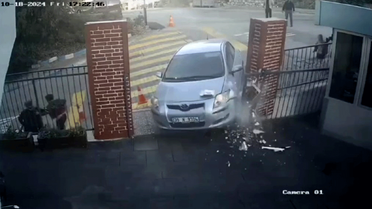 İzmir'in Narlıdere ilçesinde el freni çekilmeyen otomobil, bir okulun bahçe kapısını kırarak içeri girdi. 2 çocuk ile 2 velinin son anda kurtulduğu kaza anı güvenlik kamerasına yansırken, aynı okulda kısa zaman önce de kaza meydana gelmişti.