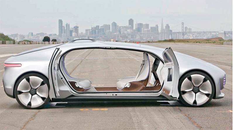 Mercedes’in “geleceğin otomobili” adıyla tanıttığı F 015 modeli, sürücüsüz araç teknolojisine sahip. 2030’da yollara çıkması planlanan bu konsept otomobilde şoför gerekmediği için aracın koltuk tasarımı da yolcuların yüz yüze seyahat edebileceği şekilde karşılıklı olarak konumlandırılmış.