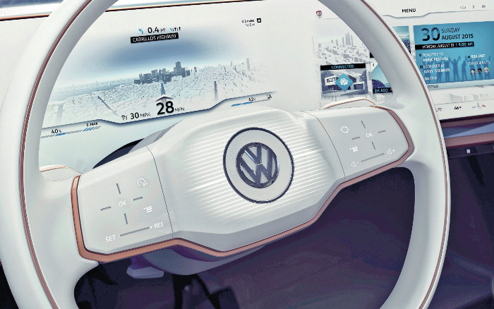 Volkswagen’in elektrikli konsepti Budd-e, hareket ile kontrol edilebiliyor. Yani araç sahipleri el hareketleri ile kapıları açıp kapatabilecek. Şirket, MIB-2 multimedya sistemli Golf R Touch konseptiyle de öne çıkıyor. Araçları akıllı telefon ve tabletle uyumlu hale getiren bu sistem, Google’ın Android Auto ve Apple’ın CarPlay sistemleri ile uyumlu olarak çalışıyor.