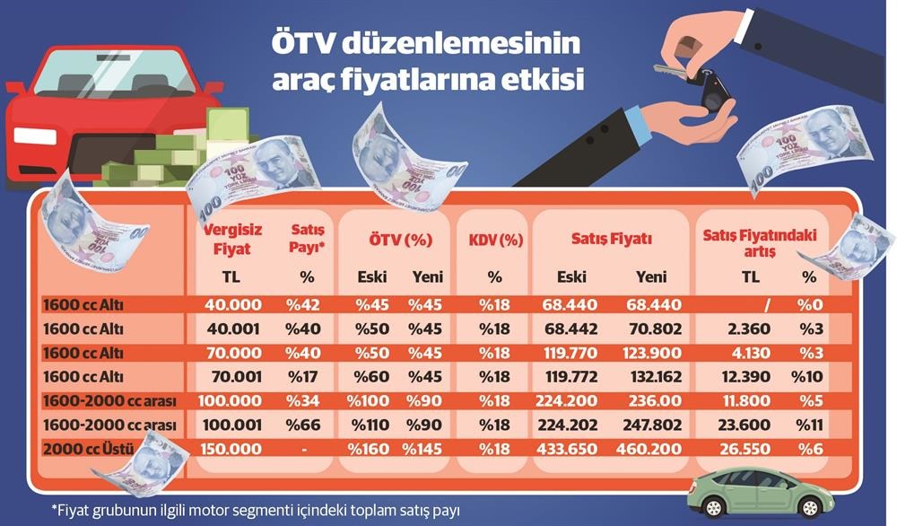 ÖNEMLİ ARTIŞ 70 BİN LİRA ÜSTÜ ARAÇLARDA