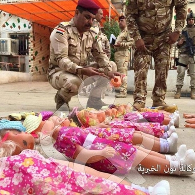 Russia Today'de yer alan habere göre; DAEŞ üyeleri, içine bomba koyulan oyuncak bebekleri, gelecek ay milyonlarca Şii'nin Erbain anmaları için Kerbela kentine giderken kullanacağı yolda dağıtmayı planlıyordu.