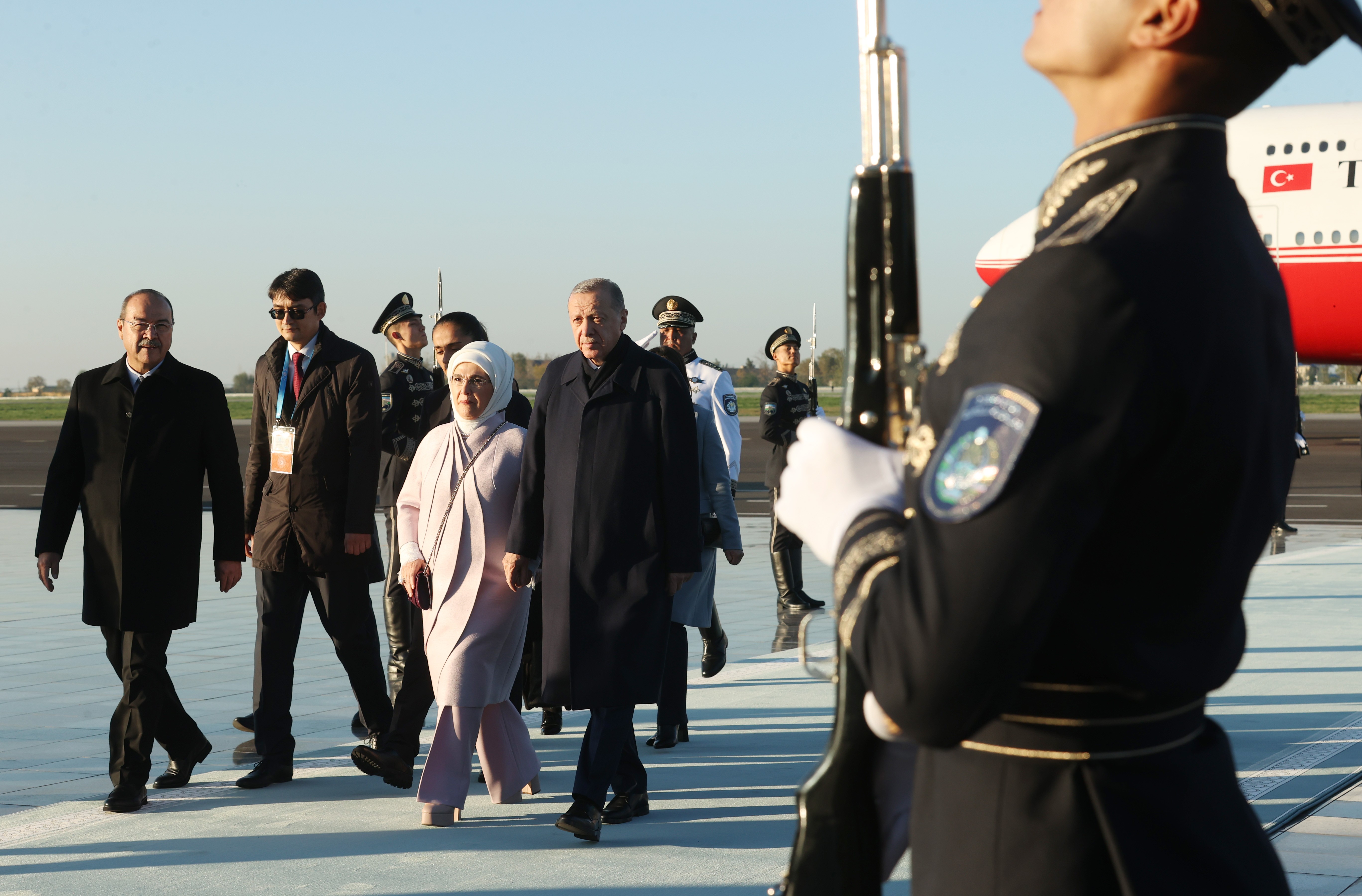 Özbekistan'da uçaktan inen Cumhurbaşkanı Erdoğan bu sürprizle karşılaştı!