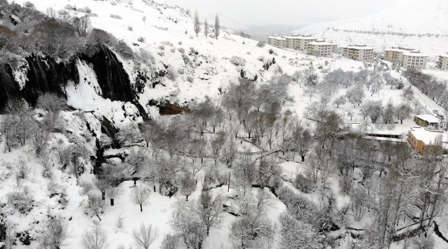 Erzincan’da doğal güzelliğiyle öne çıkan ve son günlerde etkili kar yağışıyla beyaza bürünen Girlevik Şelalesi, ziyaretçilerini cezbediyor. Kent merkezine 35 kilometre uzaklıktaki Kalecik köyünde 9 kaynak suyunun birleşmesiyle oluşan ve 40 metreden dökülen sularıyla ilgi gören şelale, doğaseverlere ve fotoğraf tutkunlarına her mevsim ayrı güzellik sunuyor.