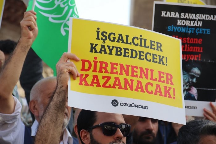 Protestoya katılanlara hitap eden Özgür-Der Genel Başkan Yardımcısı Kenan Alpay, Filistin direnişinin Gazzeli Müslümanların haysiyetli duruşundan dolayı dünyanın gündeminde olduğunu söyledi.
