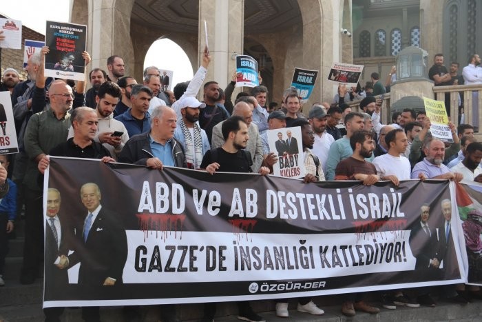Özgür-Der’in çağrısıyla Taksim Camisi'nin önünde siyonist katillere karşı eylem düzenlendi.