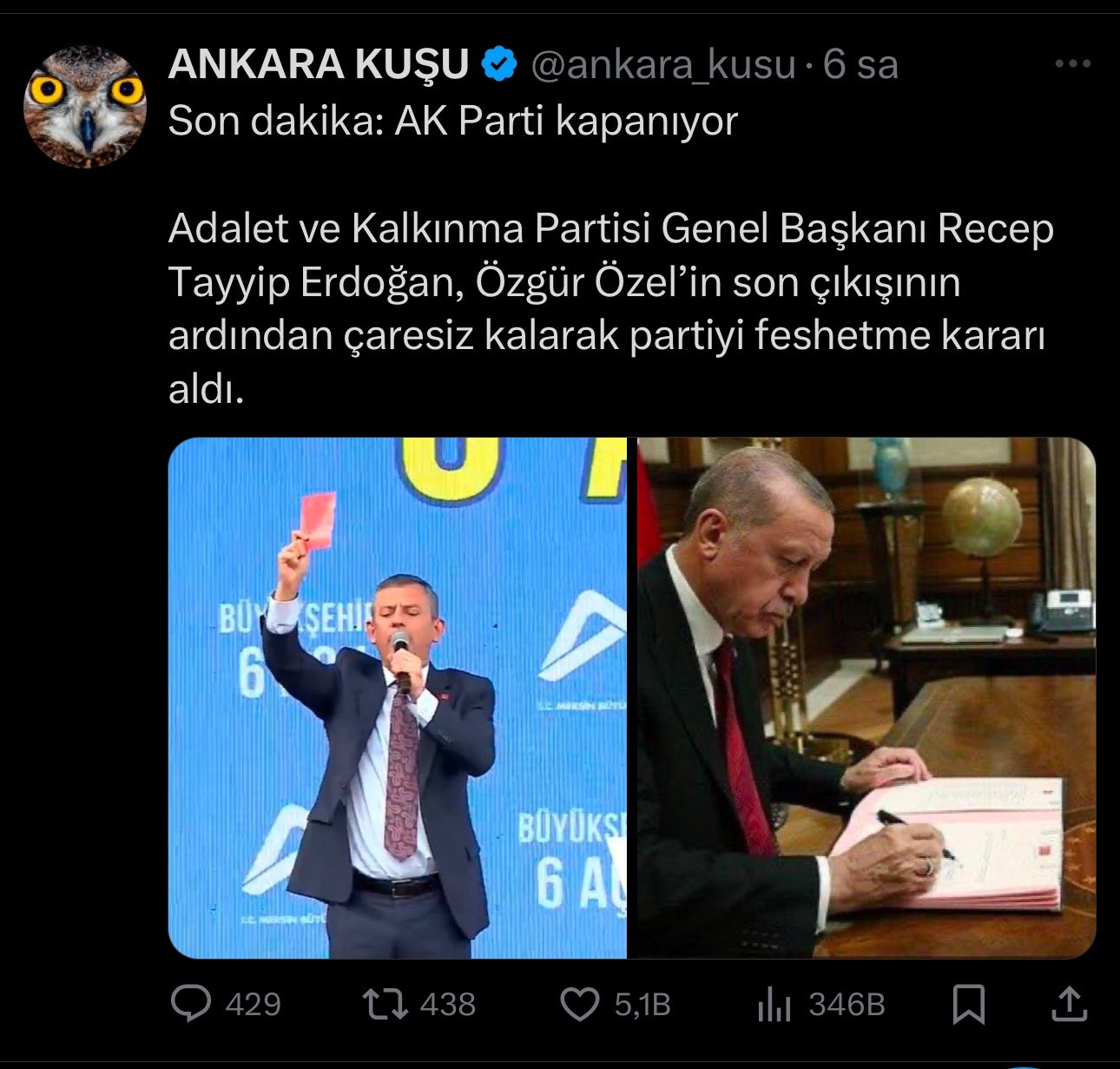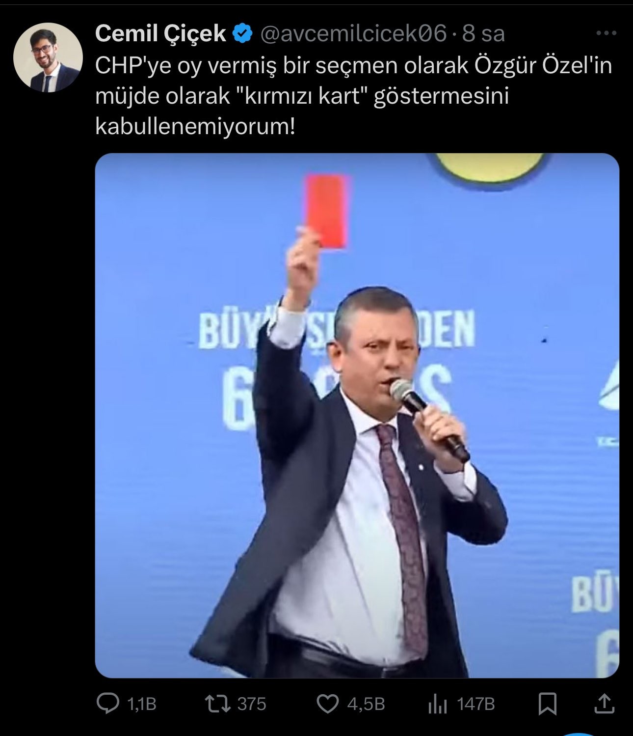 CHP lideri Özgür Özel’in alay konusu olan “sürpriz” hamlesi, CHP’lileri ayağa kaldırdı. Kendince hükümete yönelik eleştirisini kırmızı kart göstererek ifade etmeye çalışan Özel’in hem kendini hem de partisini rezil ettiği ifade edildi.