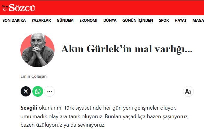 Sözcü yazarı Emin Çölaşan, CHP içinden gelecek linç girişimlerini göze alarak Özgür Özel’i sert bir dille eleştirdi. Akın Gürlek'in mal varlığını açıklayacağını ilan edip sonra sus pus olan Özel’e, Çölaşan'dan "vicdan" göndermesi geldi.