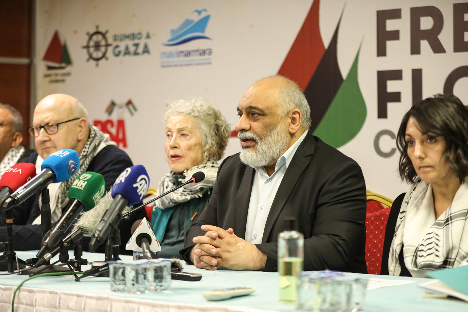 İHH Genel Merkezi’nde düzenlenen basın açıklamasına, İHH Genel Başkanı Bülent Yıldırım’ın yanı sıra; 10 ülkeden Uluslararası Özgürlük Filosu Koalisyonu üyesi akvistler katıldı. Koalisyonun katılımcı kuruluşları arasında; Türkiye’den İHH İnsani Yardım Vakfı ve Mavi Marmara Derneği, Kanada’dan Canadian Boat To Gaza, Malezya’dan My Care Malaysia, Norveç’ten Ship To Gaza Norway, Güney Afrika’dan Palestine Solidarity Alliance, İsveç’ten Ship to Gaza Norway, ABD’den US Boat to Gaza, Avustralya’dan Free Gaza Australia, Yeni Zelenda’dan Kia Ora Gaza, İngiltere’den Palestine Solidarity Campaing ve Breaking the Siege of Gaza yer alıyor.