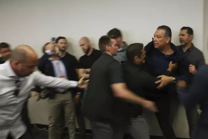 “Ben senatörüm ve Bakan'a bir sorum var” diyen Padilla, güvenlik görevlileri tarafından salondan çıkarıldı ve yere yatırılarak ters kelepçe takıldı.