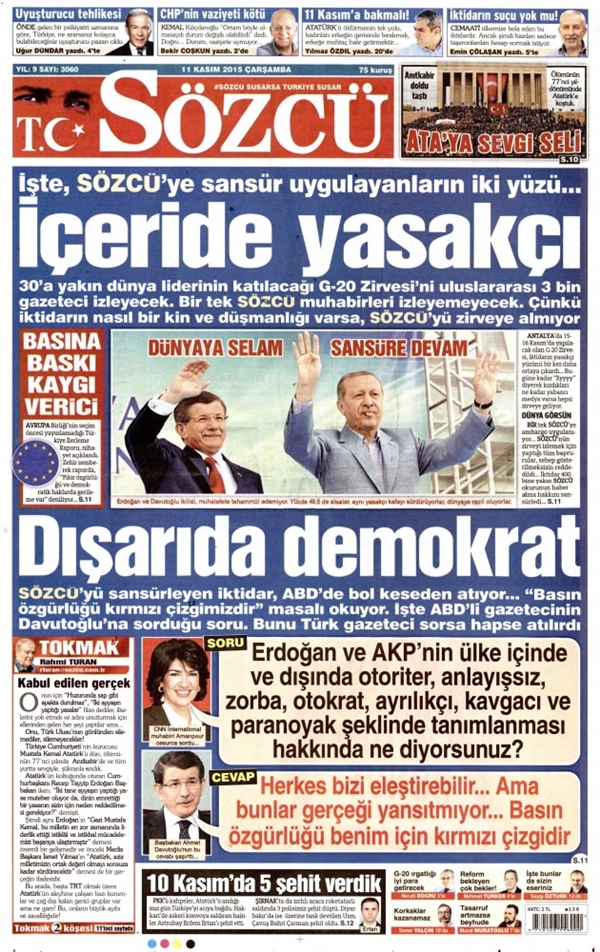 Cemaatin finans desteğiyle çıkan ve çıktığı ilk günden beri çok sert Erdoğan düşmanlığı yapan Sözcü adlı paçavra dünya liderlerinin katılacağı G-20 zirvesine alınmayacak.