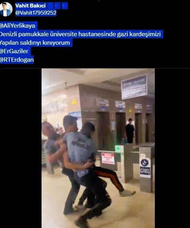 Denizli Pamukkale Üniversitesi (PAÜ) Hastanesi’nde iki güvenlik görevlisinin terör gazisine yönelik uyguladığı şiddetle ilgili olarak sosyal medyada paylaşılan görüntüler tepki topladı.