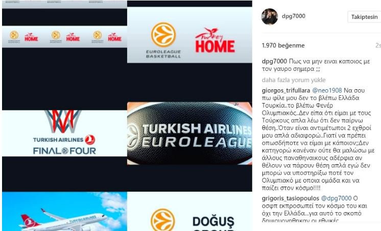 Panathinaikos Başkanı Dimitris Giannakopoulos, Fenerbahçe ve Olympiakos arasında oynanacak Euroleague Finali öncesince kişisel Instagram hesabından yaptığı paylaşımla tepki çekti.