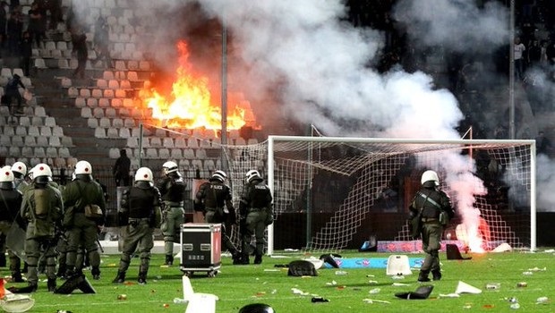 Yunanistan Kupası yarı final ilk maçında, Paok ile ligde şampiyonluğunu ilan eden Olimpiakos karşı karşıya gelmişti. Olimpiakos, maçın son bölümlerine 2-1 önde girmişti. 86. dakikada Paok'lu Robert Mak'ın, ceza sahası içinde yerde kaldığı pozisyonda hakem “devam" kararı verince ortalık bir anda karışmıştı. Kararı protesto eden Paok taraftarı sahaya girip; güvenlik güçleriyle çatışınca, hakem maçı tatil etmişti.