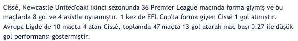 2011-12 sezonunda Newcastle United’ın renklerine dahil olan Papiss Cisse, Freiburg Kulübüe transfer olmuştur.