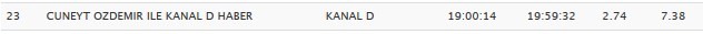 Cüneyt Özdemir dün akşam totalde 23. sırada yer alırken ana haber bültenleri yarışında da en sonuncu oldu.