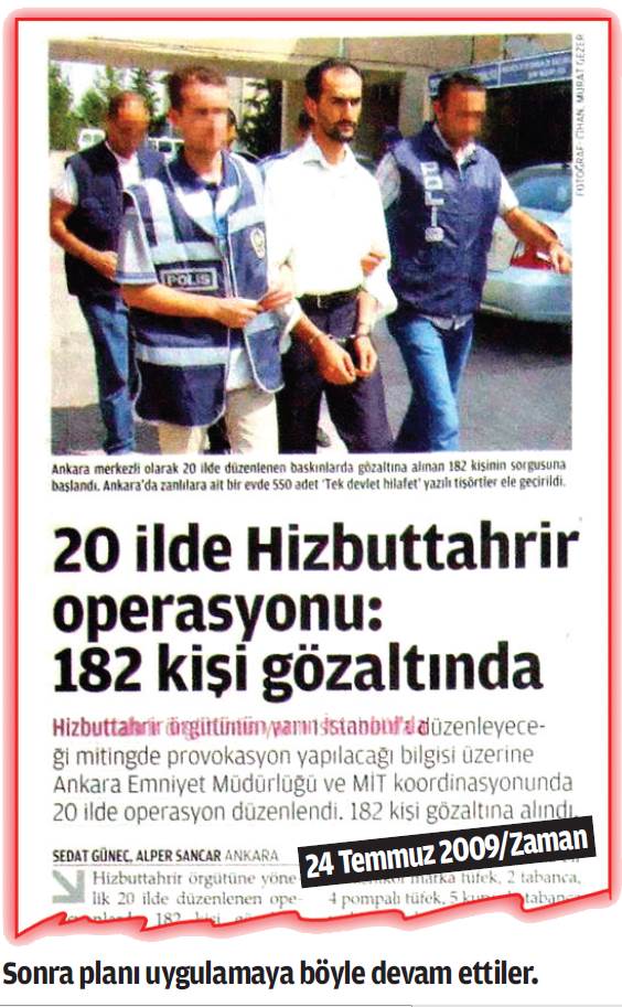 Taraf Gazetesi’nin manşet haberinden 42 gün sonra (24 Temmuz 2009) Hizb-ut Tahrir Grubu’na baskın düzenlendi.